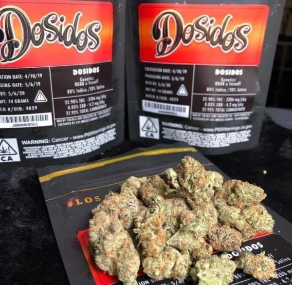 Dosidos, Start The Week On A Roll With Gas Baked Goodies! Do-Si-Dos is an indica-dominant hybrid with qualities similar to its parent, OGKB, a GSC-phenotype. With glittering trichomes, bright pistils, and lime green and lavender leaves, this strain is a feast for eyes. Its aroma is pungent, sweet, and earthy with slight floral funkiness. These classic OG aromas blend nicely with medical-grade body effects and has a exclusive nose smell