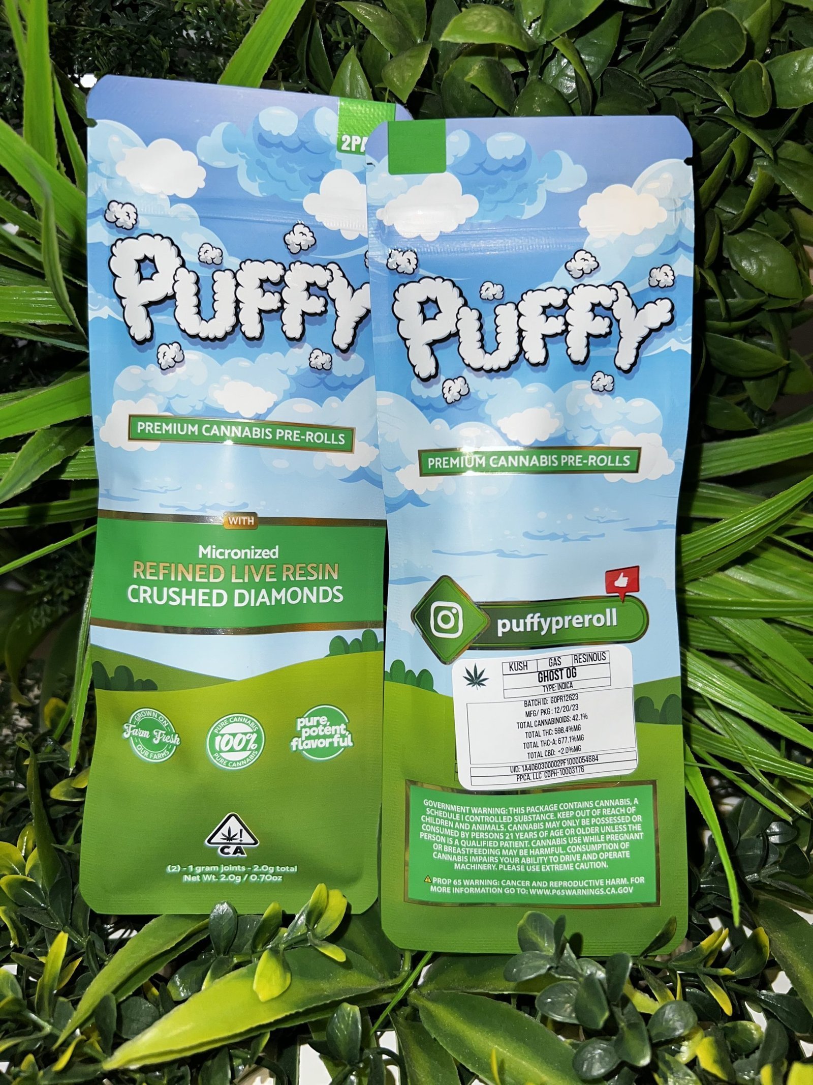 PUFFY- Live Resin/Crushed Diamond Infused 2pck Pre roll- GHOST OGPUFFY- Live Resin/Crushed Diamond Infused 2pck Pre roll- GHOST OG