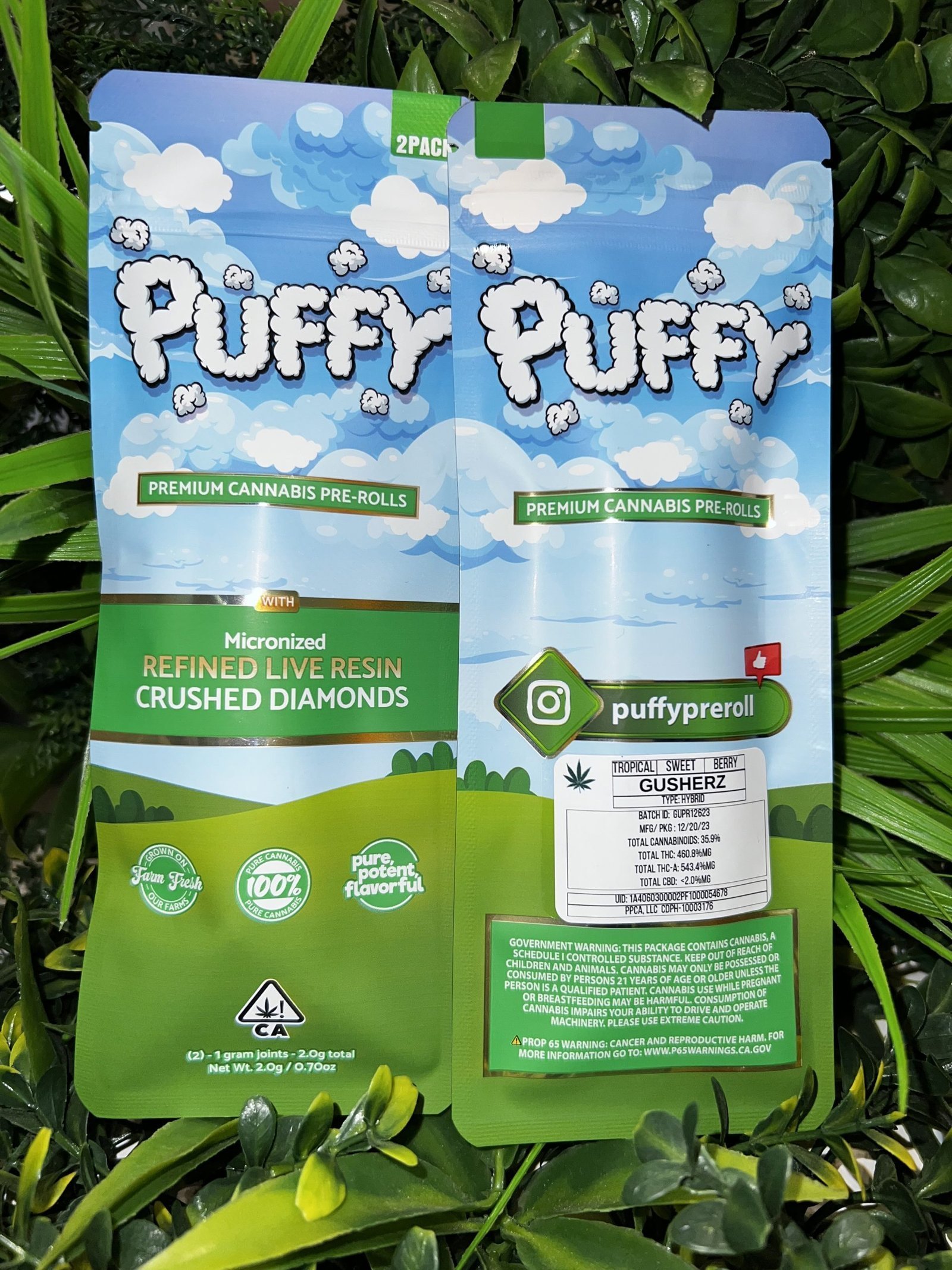 / PUFFY- Live Resin/Crushed Diamond Infused 2pck Pre roll- GUSHERZ